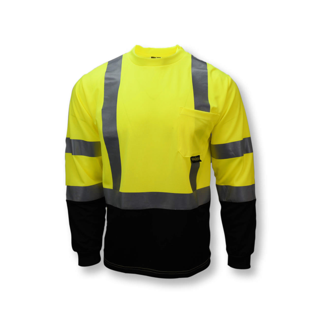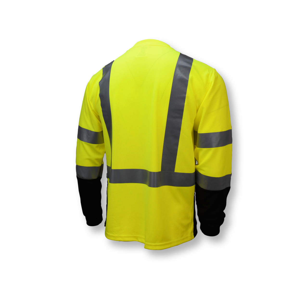 Radians ST21B Type R Class 3 High Visibility T-Shirt with Max-Dri™ Moisture Wicking Mesh is made with an arid Birdseye Mesh allowing for maximum breathability, without compromising durability. The stripes are adhered by heat transfer rather than sewn on, making the safety T-shirt wear much more like a regular T-shirt. The wicking properties improve hot weather comfort making it feel much cooler. The front pocket does not include reflective material to allow for corporate imprints. Color blocking at the bottom of the safety shirt.