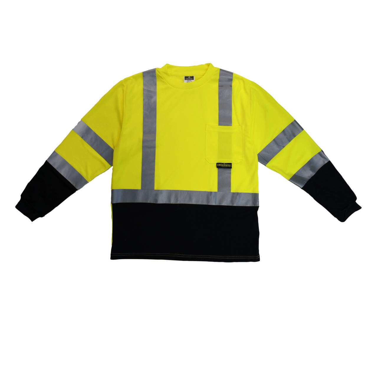 - 2″ Heat Transfer, Stretchable Reflective Tape. 1 Horizontal Stripe on Torso, 2 Stripes on Sleeves.