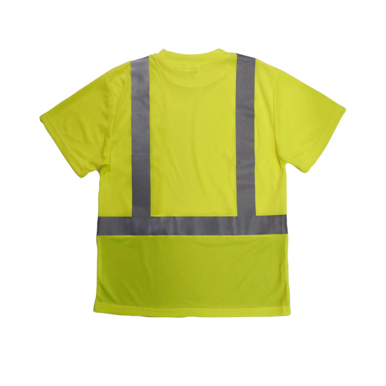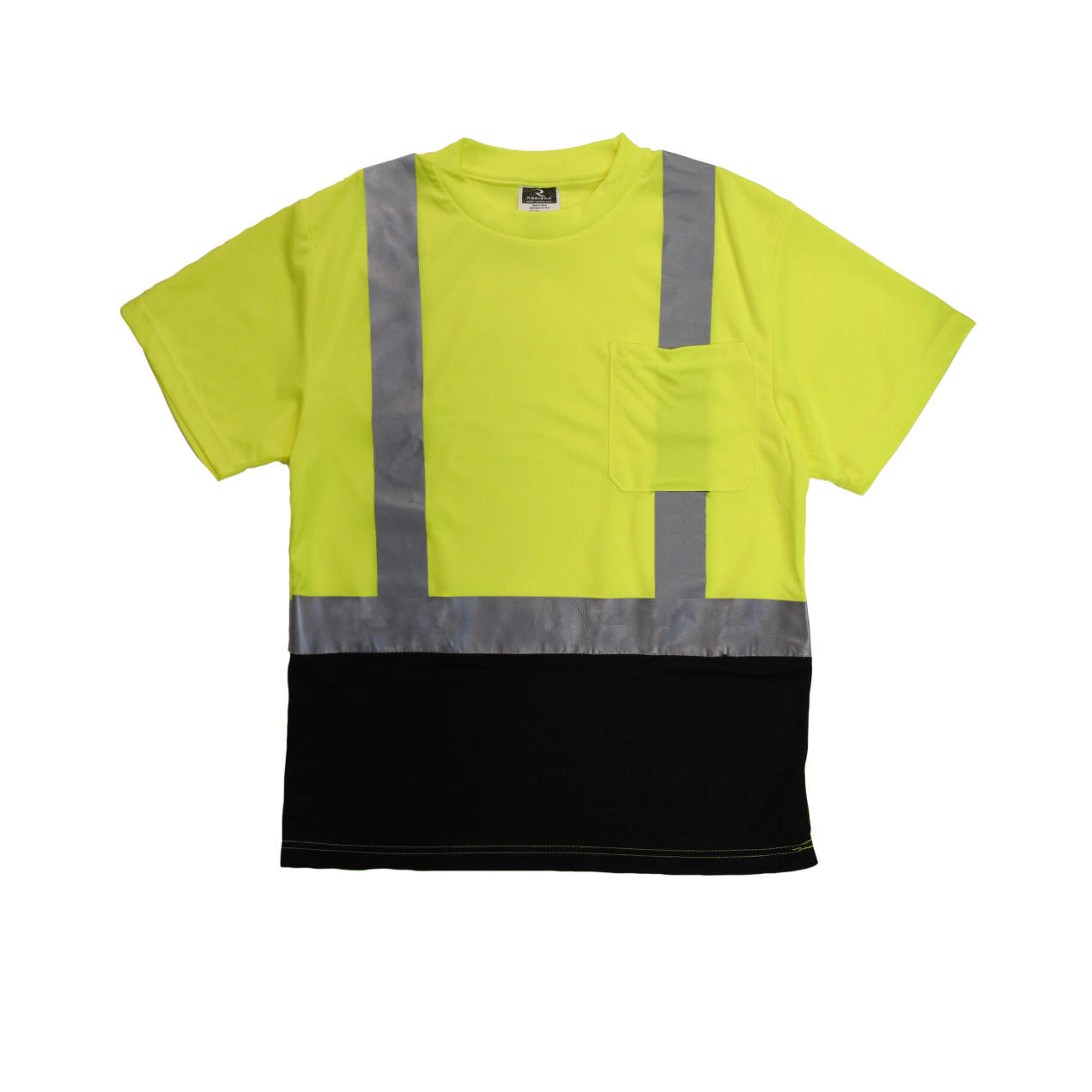 Wickmaster™ PRO Class 2 High Visibility T-Shirt with Max-Dri™ Moisture Wicking Mesh. The 2011B short sleeve hi-vis shirt is made with an arid birdseye mesh allowing for maximum breathability, without compromising durability. The stripes are adhered by heat transfer rather than sewn on, making the safety t-shirt wear much more like a regular t-shirt. The wicking properties improve hot weather comfort making it feel much cooler. Color blocking at the bottom of the t-shirt.